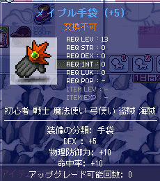 DEX5・命中率10のメイプル手袋が出来上がりました。