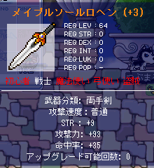メイプルソールロヘンが装備できるようになりました。(´ー`)