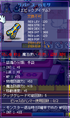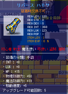 手袋を装備する前のINTが680代?でしたので、オプションによりINT+20程増えました。