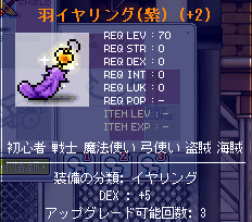早速羽イヤリング(紫)と交換し、釣り上げた七色羽の書を貼り付けてみました。