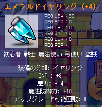 以前のイヤリングは30%書が1枚だけ宿った代物、INT3魔力5の失敗品ですが、