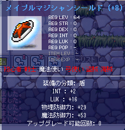 メイプルシールドが手に入った所で、モミジ2000枚とともにマジシャンシールドに