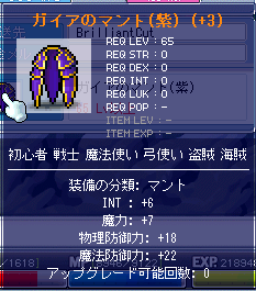 INT補正の方は現在装備中の紫マントと同じですが、魔力が4アップとなりました。ヽ( ´ー)ノ