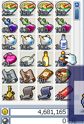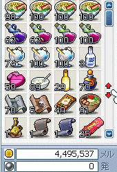 まず、狩り開始前の消費アイテムとメル、及び経験値を。