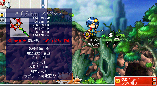 ということで、メイプルホーンスタッフのドロップを狙いに行くことにしました。