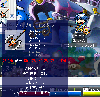 実はこれが今年に入って最初のメイプル装備ドロップなのです。
