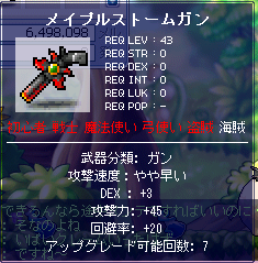 韓国情報によると海賊の43レベル銃、メイプルストームガンをドロップするとのこと。