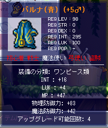 レベルアップ前はINT8魔力100のブルーウイングを使っていたのですが、変更後の武器の
