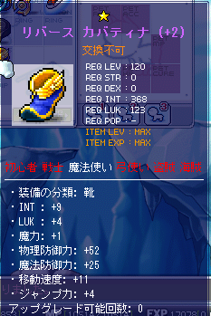 拾った装備強化の書をリバースカバティナに貼ってみました。