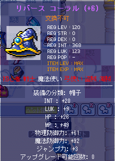 トータルでの成長はINT+1、LUK+1、HP+26、MP+24となりました。